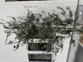 ふとシンボルツリーのオリーブを見ると、枝が伸び放題のボーボーな姿になっていたので